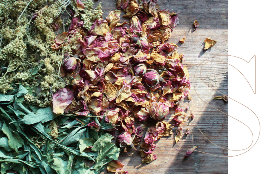 Tee: Zitronenverbene, Melisse, Oolong, Jasmin, Schwarztee, Lindenblüten, Hibiskus, Minze, Rosenblätter